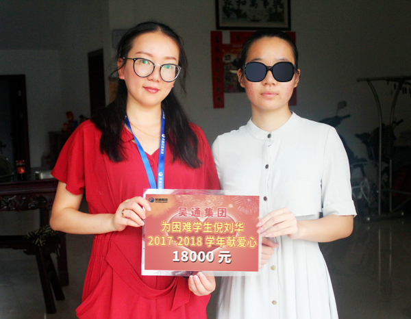月25日下午,吴通集团两名工作人员,拎上慰问果篮,赶赴苏州吴江区七都镇隐读村,为即将开学的困难学生倪同学,送上了2017至2018学年含该学年学费7260元、住宿费1200元及生活费在内的人民币一万八千元整,解决了倪同学继续就学的燃眉之急。