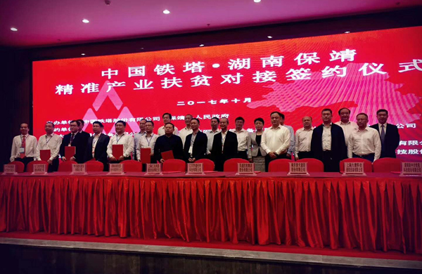 10月10日,中国铁塔·湖南保靖精准产业扶贫对接会在湘西州保靖县举行。中国铁塔股份有限公司副总经理高步文,湘西州委常委、常务副州长向恩明,州政协副主席、保靖县委书记卢向荣,县委副书记、县长杨志慧,及11家国内通信行业知名企业代表出席会议。吴通集团总裁助理、营销中心负责人李总,代表集团出席并进行签约,助力其精准扶贫项目。