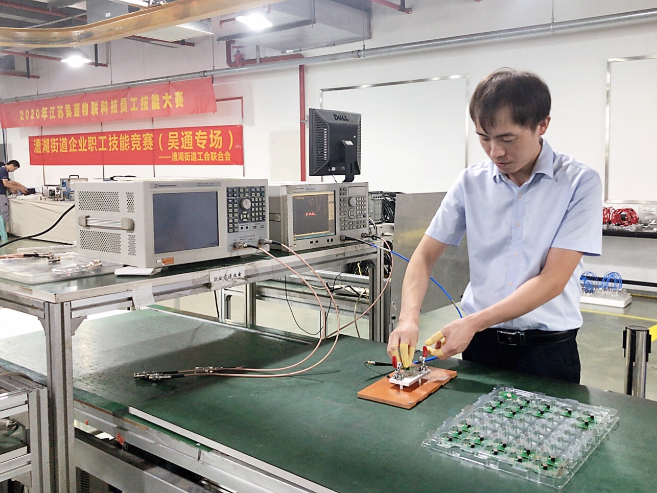 近日,为提高车间整体技能水平,树立先进典型,调动员工学知识、练技能的积极性和创造性,使员工展示技能水平和积极向上的精神面貌,在漕湖街道工会联合会支持下,漕湖街道企业职工技能竞赛吴通专场之2020年江苏吴通物联科技员工技能大赛,在物联科技圆满举办。