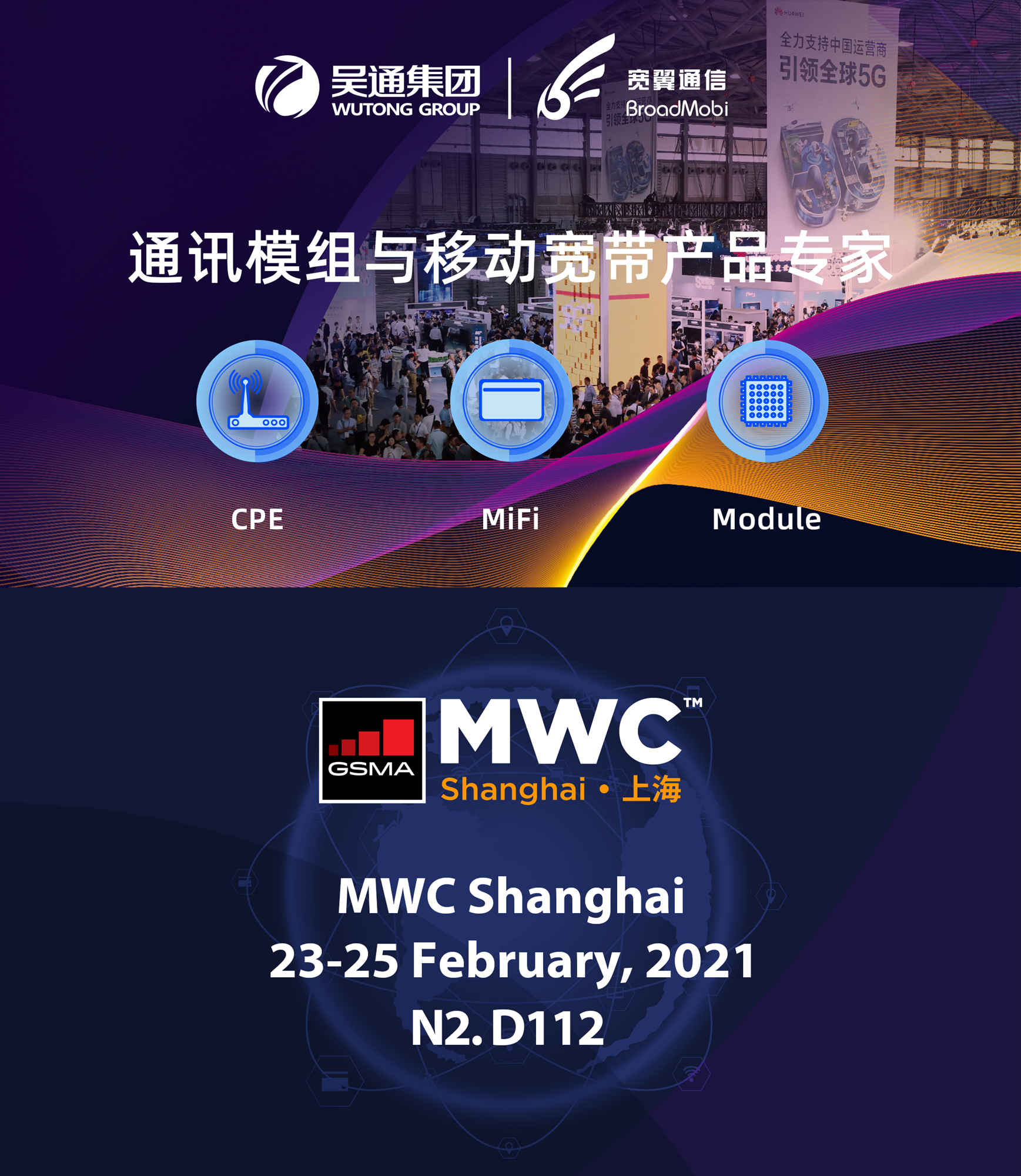 本次大会将为所有参会者提供绝佳的机会去聆听行业专家领袖们对于5G“和合共生”的独到见解,见证行业各方在5G发展道路上所做出的创新成果。想要进一步探索5G消息服务和5G通信终端模组的各位嘉宾及合作伙伴,欢迎2月23日—25日莅临上海新国际博览中心(SNIEC)N4.D10.4 & N2.D112展位参观交流,吴通控股集团恭候您的光临!