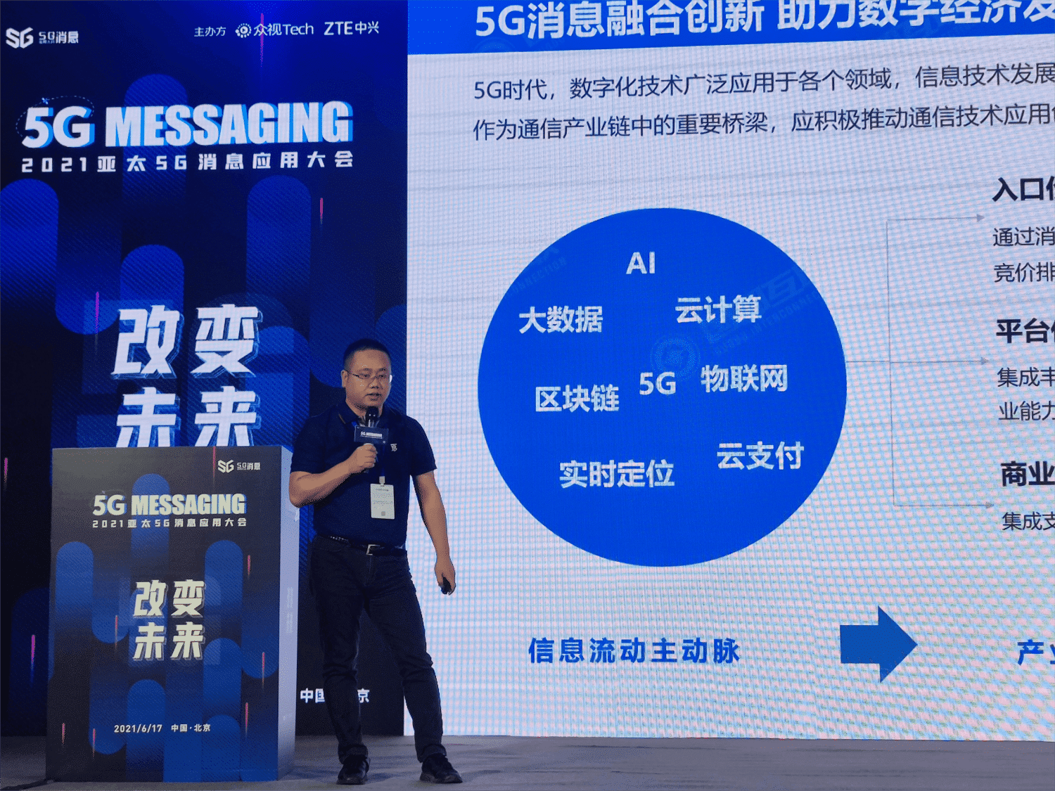 2021年6月17日,由众视Tech 联合中兴通讯共同举办的2021亚太5G消息应用大会在北京拉开帷幕。大会秉持互联为本、应用为基、价值为要的理念,致力打造5G消息生态中“中国模式”的传播者,与产业链的优秀合作伙伴一起立足中国,辐射亚太,放眼世界,走出中国5G消息范本之路!