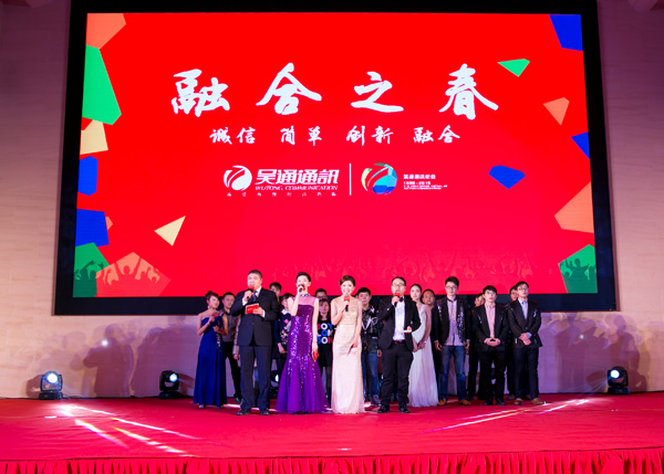 “融合之春”迎新晚会在大家的共同努力下,取得了圆满成功。一方面在于活动中展示出了吴通各团队奋发图强、锐意创新的精神面貌。另一方面, “诚信、简单、创新、融合”的吴通文化元素传递到了每一个人吴通人的灵魂深处。我们坚信,在大家共同的努力下吴通的明天会更加美好!