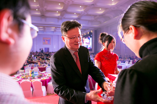 首先,万卫方董事长发表激情洋溢的新年致辞,让吴通人对集团未来的发展前景充满期望。优秀员工代表从高管团队手中接过沉甸甸的水晶奖杯,颁奖仪式将晚会推向又一个高潮。大家陶醉在吴通人自己策划、自导自演的,围绕企业精神和企业核心价值观的各种文娱节目中。子公司北京国都的小品“吴通人”、风雷光电的“甄缳传”等节目博得了台下的阵阵掌声和笑声。