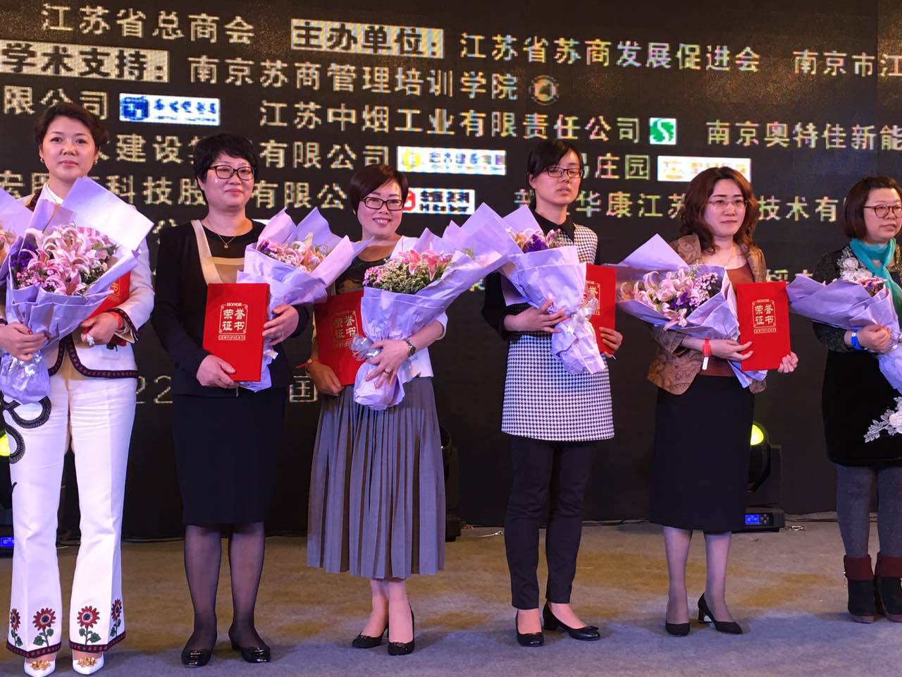 2016年4月22日下午,由江苏省苏商发展促进会、南京市江宁区人民政府联合主办的“2016苏商创新创业发展高峰论坛暨首届苏商金茉莉奖颁奖典礼”在南京成功举行。江苏省委常委、南京市委书记黄莉新参观大会,江苏省人大常委会原副主任丁解民作重要讲话。格力电器董事长董明珠以及来自海内外的500多名苏商代表出席本次盛典。论坛上“金茉莉杰出奖·2015年度苏商十大杰出女性”隆重揭晓。吴通集团总经理胡霞作为“金茉莉杰出奖·2015年度苏商十大杰出女性”排名第一的获奖者,应邀参加隆重的颁奖活动。